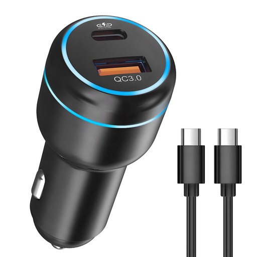 홈플래닛 PD 3.0 48W 2포트 차량용 시거잭 고속 충전기 + C to C 충전케이블 세트