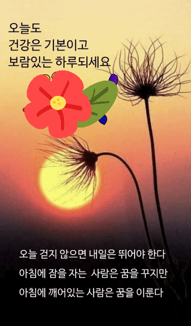 오늘도 건강은 기본이고 보람있는 하루되세요 오늘 걷지 않으면 내일은 뛰어야 한다 아침에 잠을 자는 사람은 꿈을 꾸지만 아침에 깨어있는 사람은 꿈을 이룬다